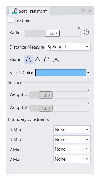 با وارد کردن دستور SoftTransform تو خط فرمان پنلی به همین نام باز میشه که تمام تنظیمات دستور از طریق همین پنل در دسترس هستن. برای فعال کردن این قابلیت کافیه گزینه Enabled رو از پنل Soft Transform علامت بزنید.