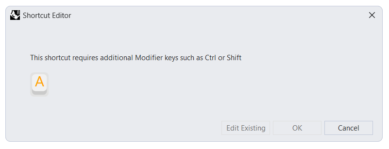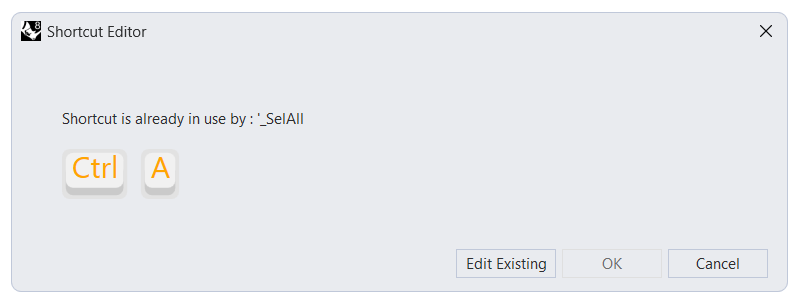 حالا تو قاب سمت راست پنجره Rhino Options میتونید لیست کلیدهای میانبر رو ببینید. ستون سمت چپ کلیدهای میانبر و ستون سمت راست ماکرویی رو نشون میده که با فشار دادن اون کلیدها اجرا میشه. با دوبار کلیک روی هر کدوم از ماکروها میتونید تغییرش بدید و ماکروی دلخواه خودتون رو بجاش بنویسید. (آموزش ماکرونویسی در راینو) همینطور برای ساختن میانبر جدید کافیه روی دکمه New از پایین همین پنجره کلیک کنید تا پنجره Shortcut editor باز شود. حالا وقتشه که کلیدهای دلخواهتو از صفحهکلید فشار بدی تا تو مرحله بعدی بتونی براش یه ماکرو بنویسی. اما تو این مرحله سه تا حالت ممکنه پیش بیاد. در صورتی که کلید میانبر انتخابی شما قابل استفاده باشه پیامی مشابه این تصویر میبینید و میتونید روی OK کلیک کنید تا
